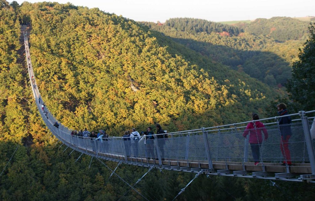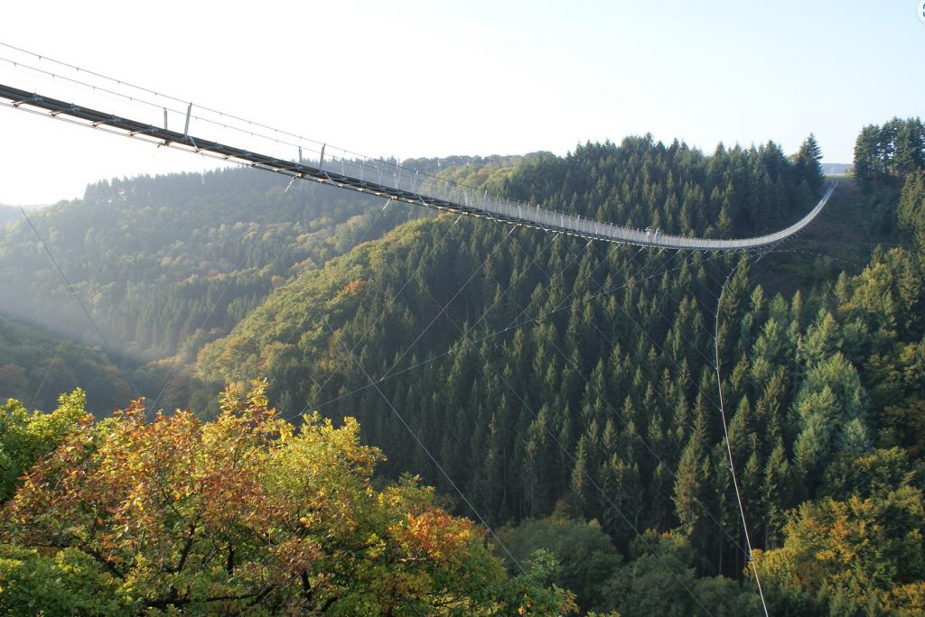 Wanneer je de A61 neemt zou je onderweg een klein stukje om kunnen rijden naar Mörsdorf (ligt 20km rechtsonder Cochem en 200 km vanaf Waldbrunn) en even stoppen bij de grootste en mooiste hangtouwbrug van Duitsland. Maar liefst 360 meter lang en 100 meter hoog. Een absoluut evenement en een belevenis voor het hele gezin (als je tenminste geen hoogtevrees hebt)