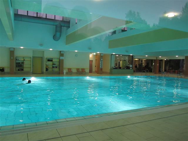 - Fitness en gezondheidsbad 10,5×8,5 m temperatuur ca. 32°, met massagestralen en steunstang in het water om deel te nemen aan watergymnastieklessen.